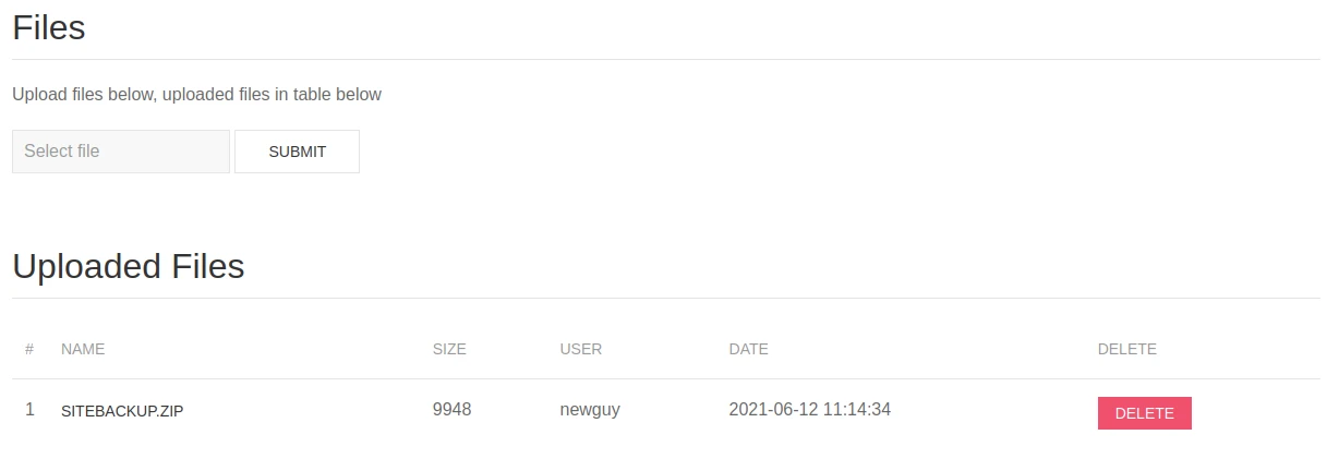 On this web interface, we find a certain number of information, in particular a page to download logs : file_logs.php. But also a page to upload files : files.php.